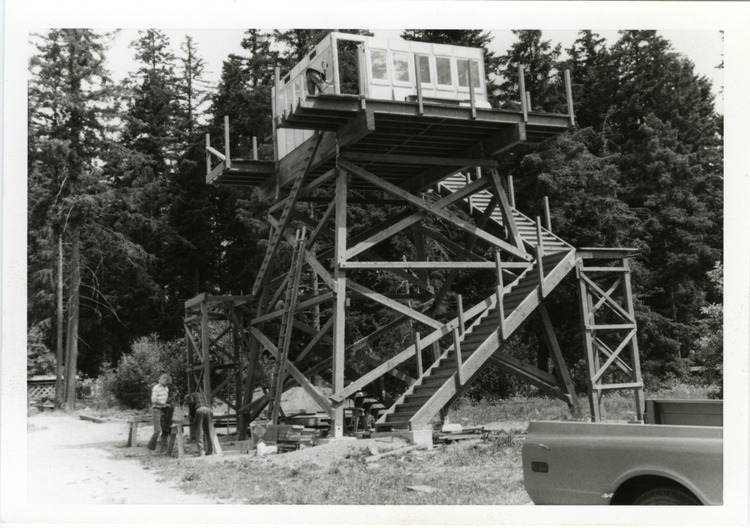 As you are likely aware, the BC Forest Discovery Centre has as part of our collection a Fire Lookout Tower that was originally constructed on the Vancouver Pacific National Exhibition grounds as part of the BC Forest Service’s pavilion during Expo ‘67. It was moved to the Centre in 1973 where it has spent the intervening years assisting the BCFDC in its mandate to educate the public on the forest industry, specifically in this case the Forest Service and fire detection measures in the 20th century.